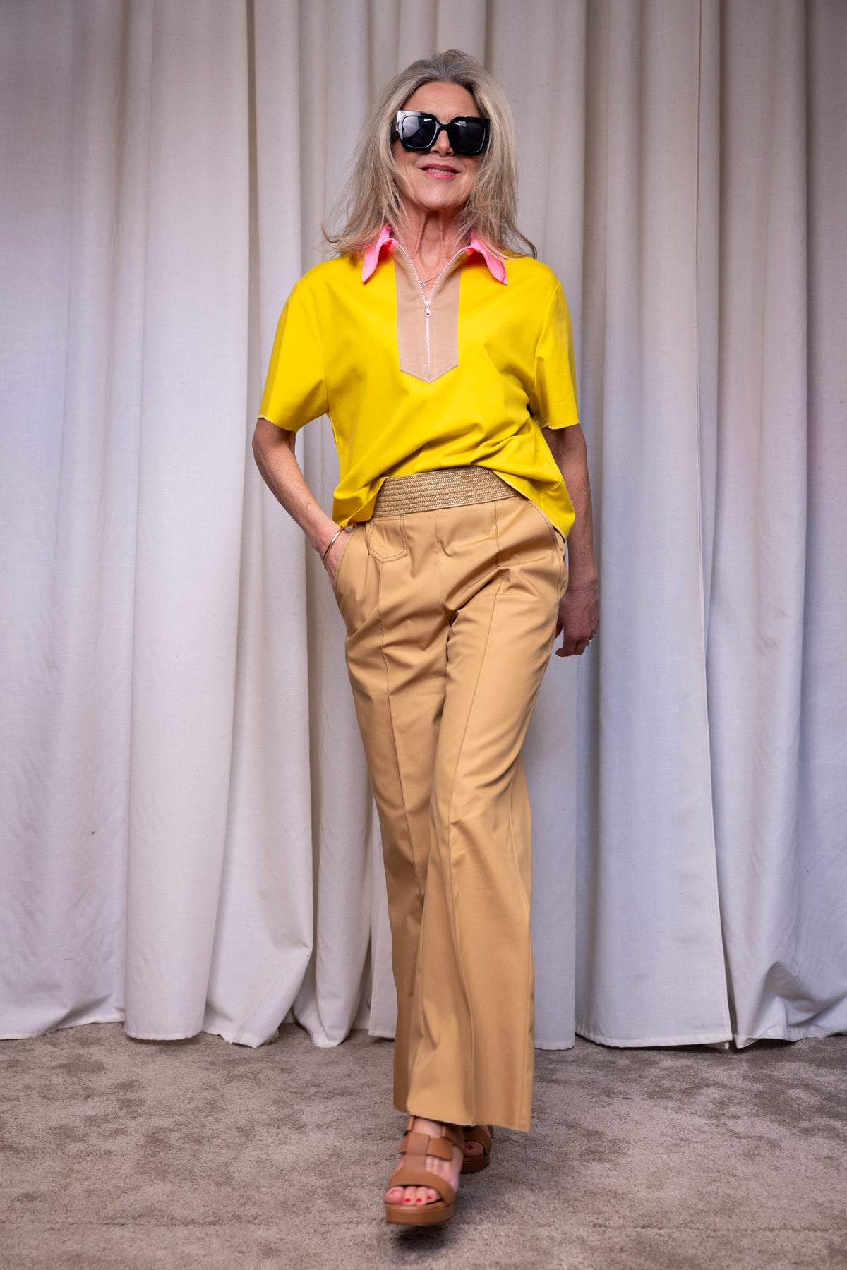 Unsere Lieblingskundinnen sind Frauen, die viel im Leben bewegen und dafür Mode schätzen, die ihnen Bewegungsfreiheit lässt. Das designgeschützte Markenzeichen sind vier fünfeckige, aufgesetzte Taschen. Viele Kundinnen erzählen mir, dass sie oft auf ihre eigenständigen Looks angespochen werden. Und in den von mir kuratierten Looks für jede Bühne bereit sind. So hat sich der Marken-Slogan KOMPLIMENTE ZUM ANZIEHEN praktisch von selbst entwickelt.