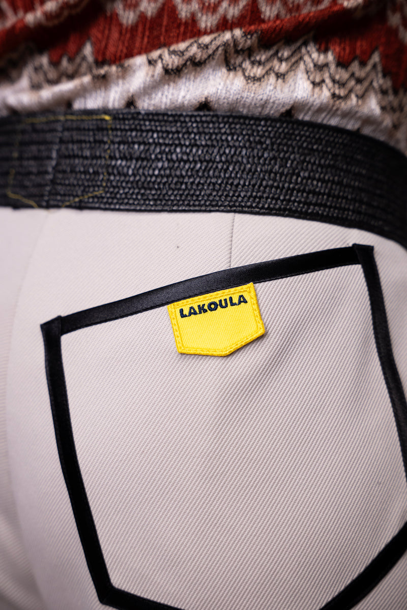 LAKOULA steht nicht nur für Kleider und Röcke, sondern auch für Hosen, nach denen man sich umdreht. Jedes Detail ist wohl durchdacht mit dem Ziel, „die tollsten Frauen der Welt“ noch attraktiver aussehen zu lassen - und das bei maximaler Bewegungsfreiheit. So ist die Hüfte „Midwaist“ geschnitten, der Reißverschluss sitzt seitlich, damit auch die seitliche Optik schön flach bleibt. Das Bein ist am Oberschenkel schmal und zum Saum hin gerade oder auch ausgestellt geschnitten. Natürlich sitzen auch die vier LAKOULA Taschen an den richtigen Stellen. Und das Ganze wird selbstverständlich in angenehmen stabilen, super angenehmen Jersey Stoffen gefertigt.