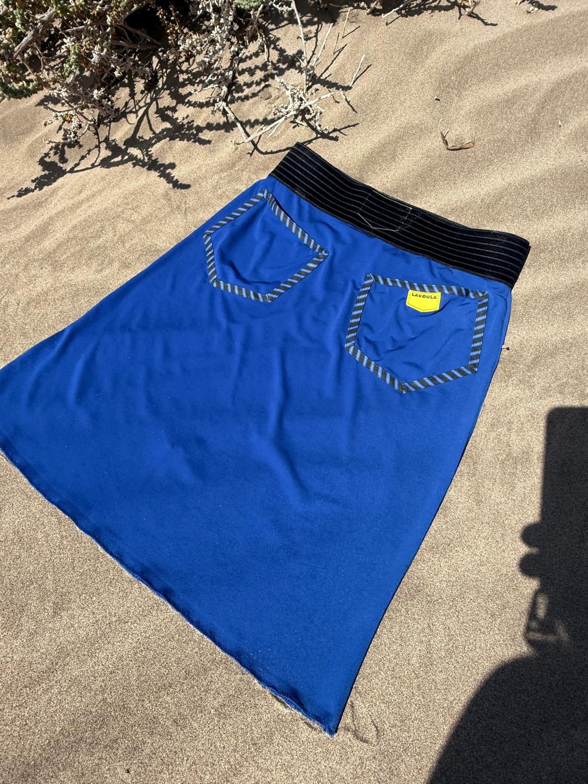 Details: Lakoula Pockets mit diagonal Kaktusgrün/Royalblauen Streifen